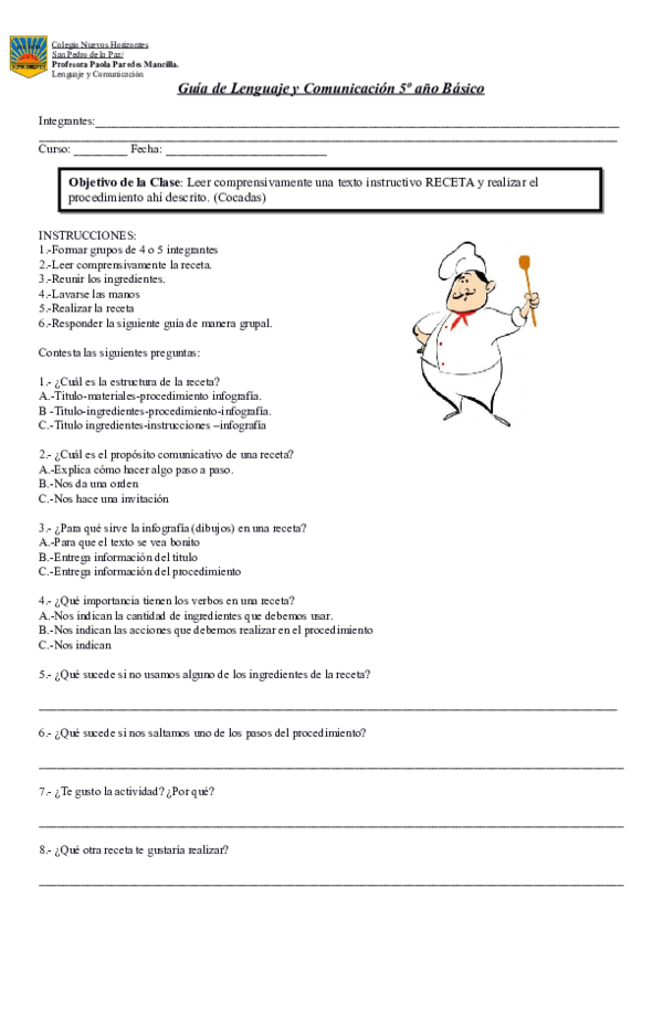 Ejercicio De Receta Para Un Mundo Mejor
